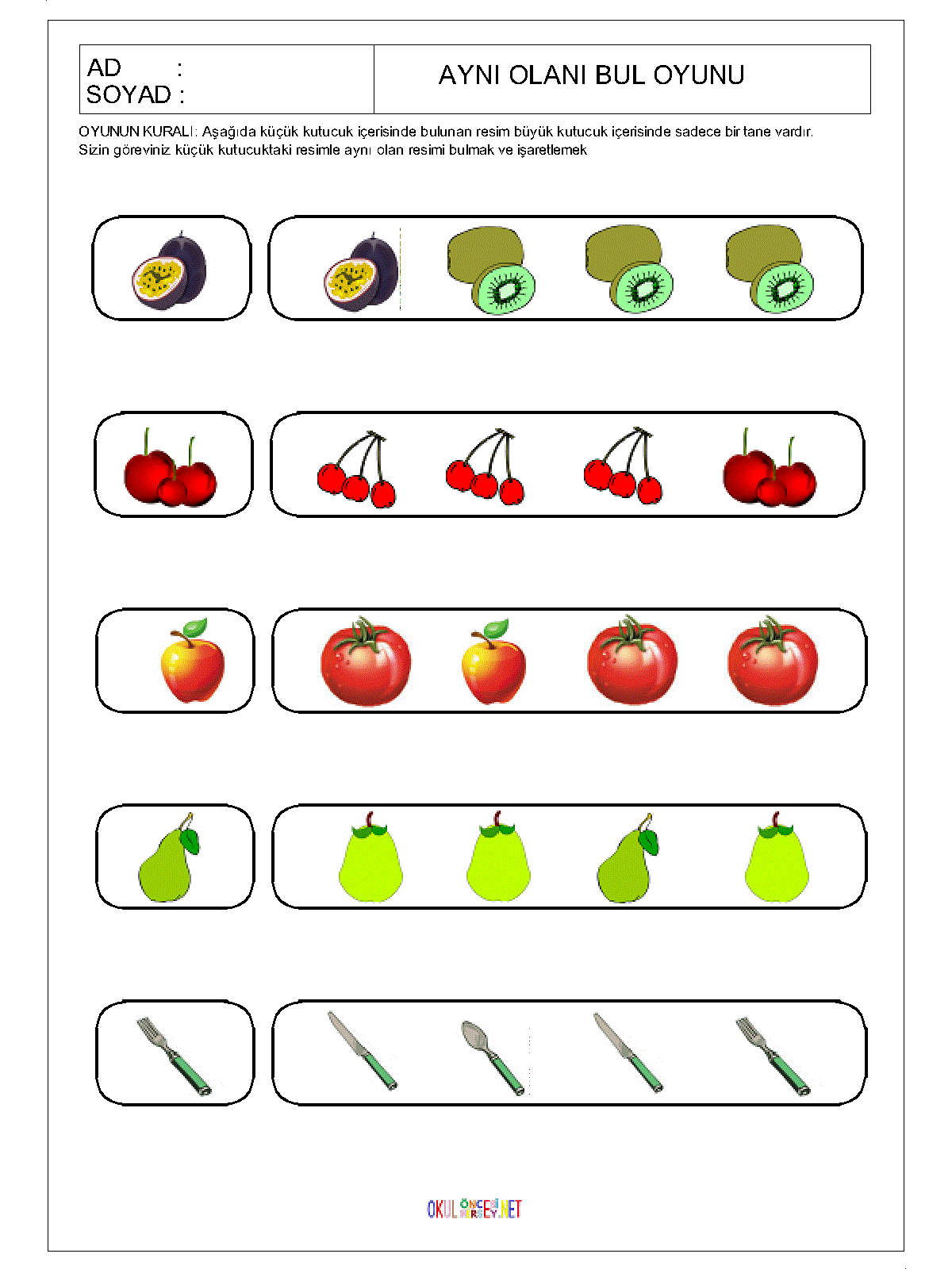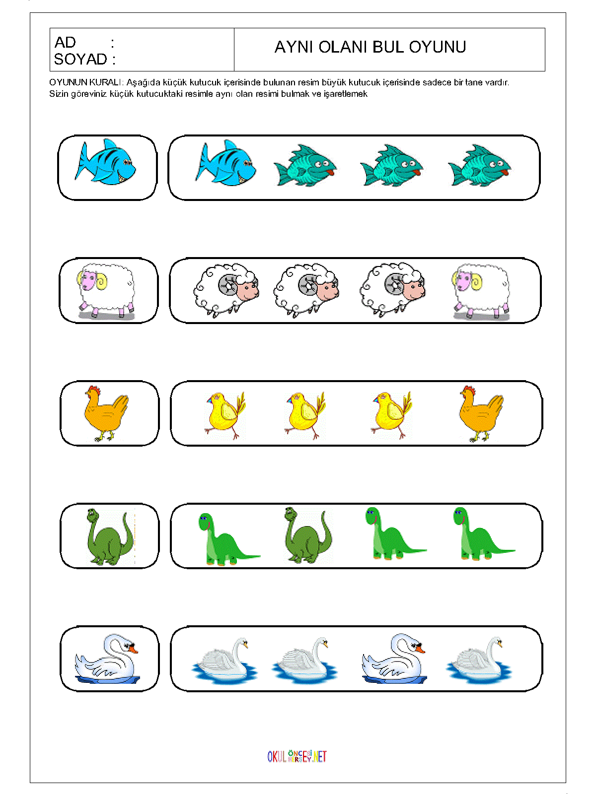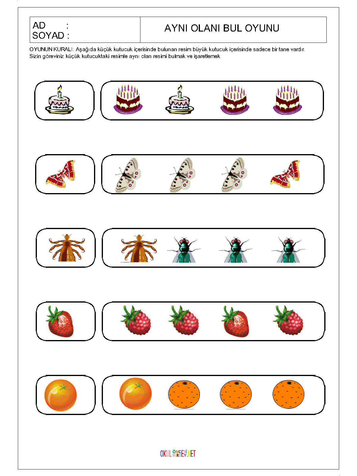 ilk öğretim Aynı Olanı Bul,