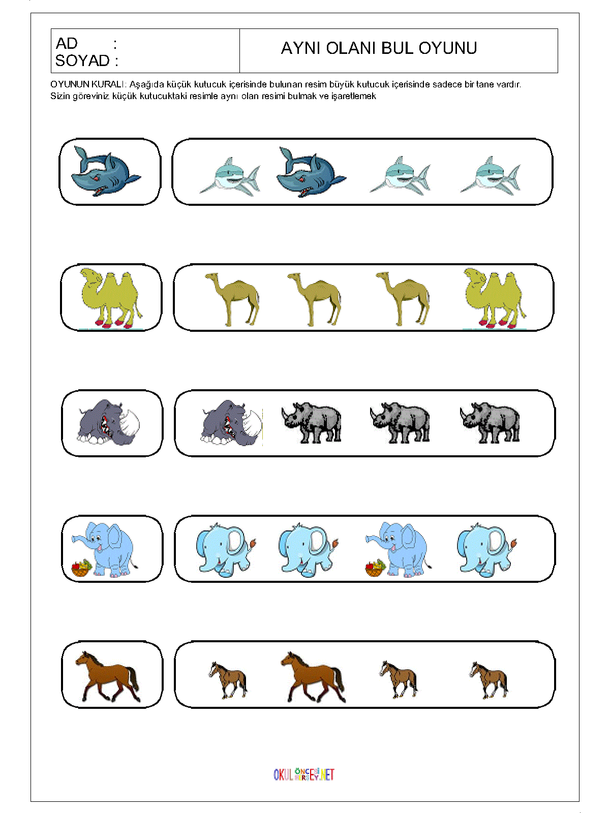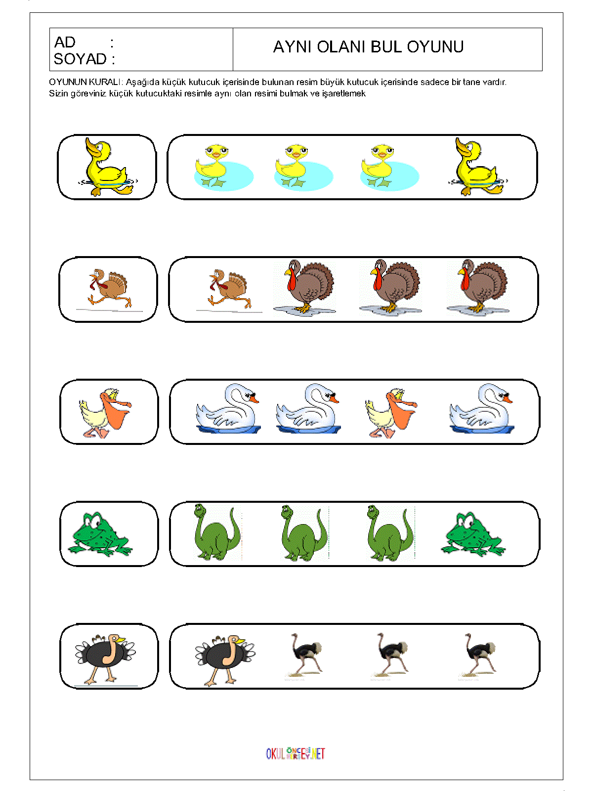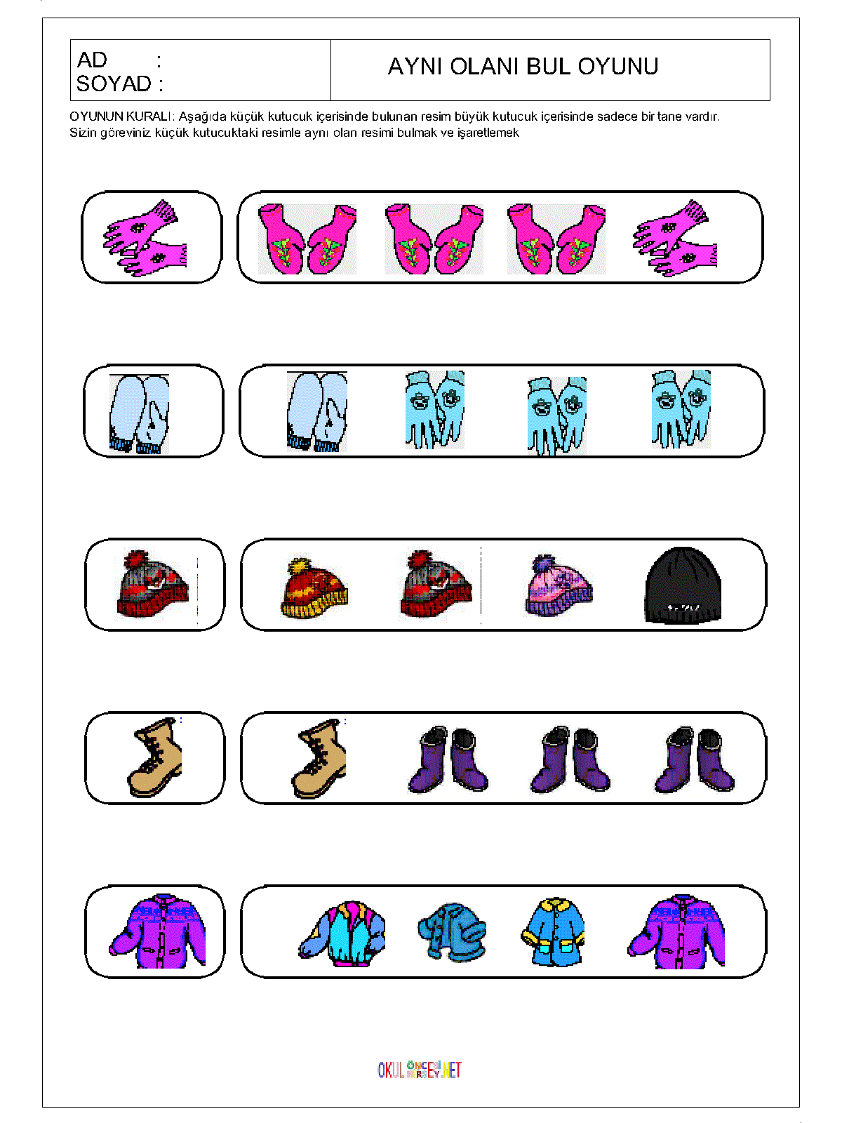 ilk öğretim Aynı Olanı Bul,