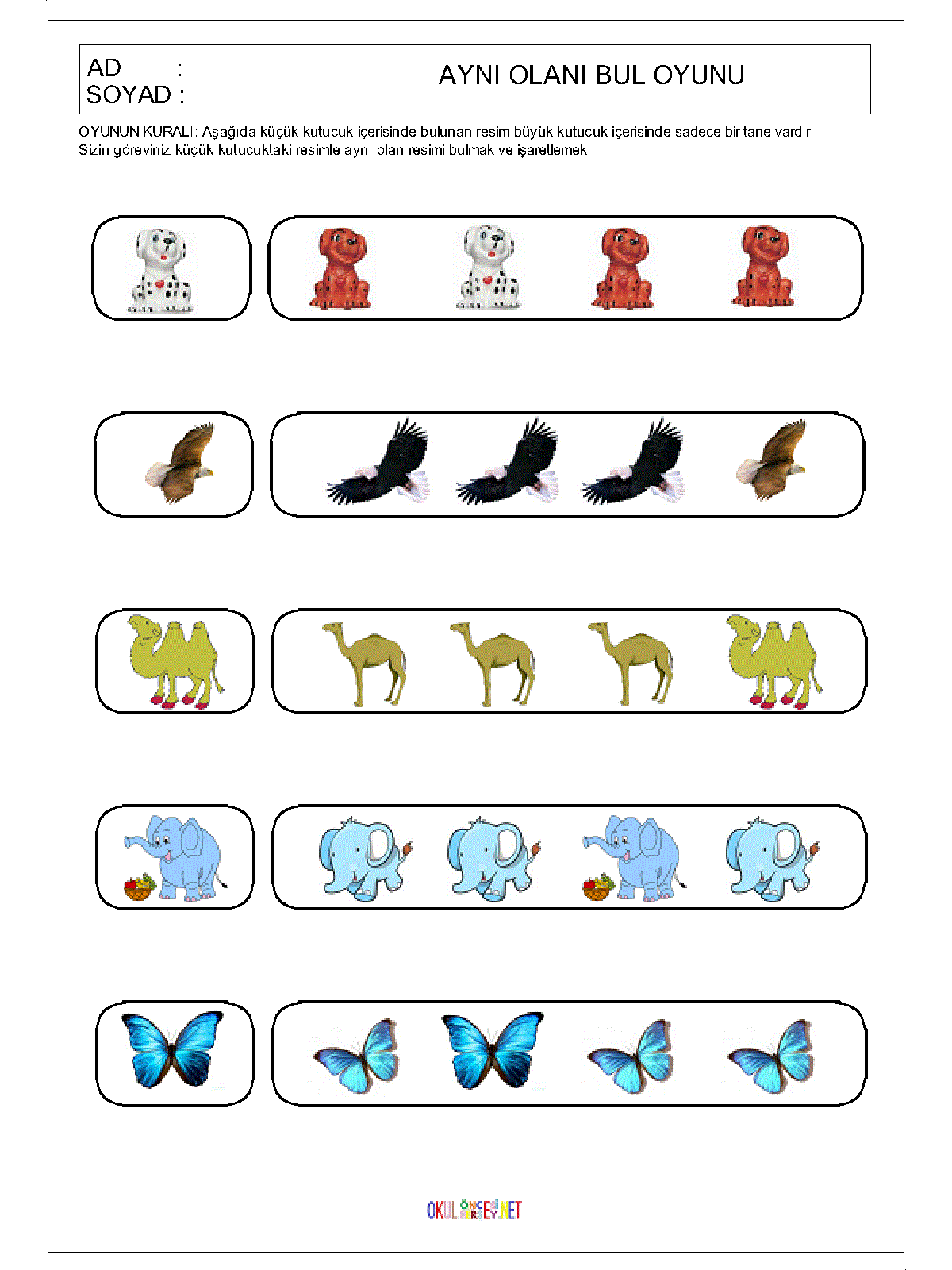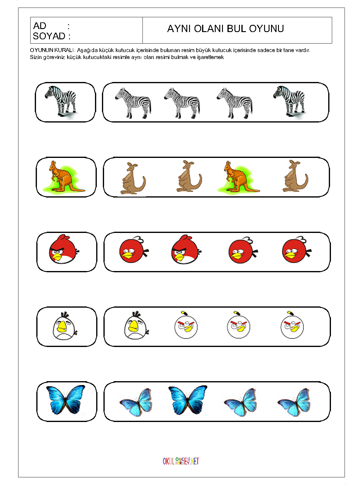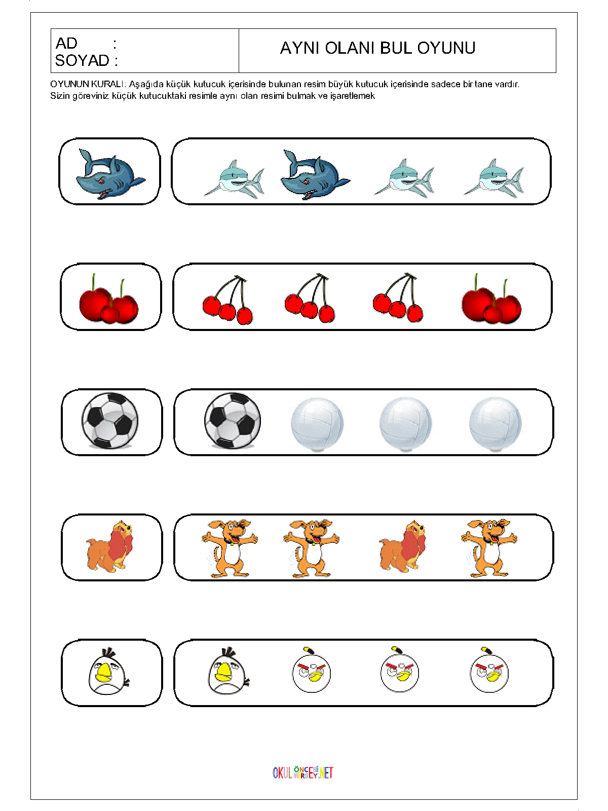 okul öncesi Aynı Olanı Bul,