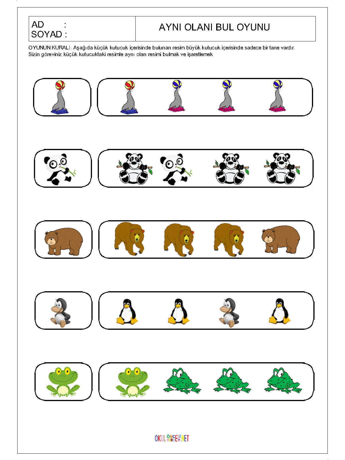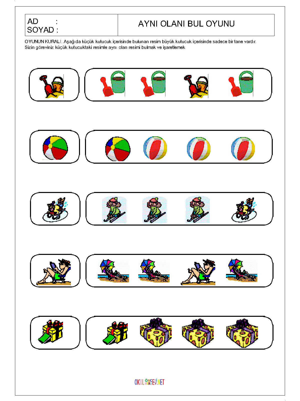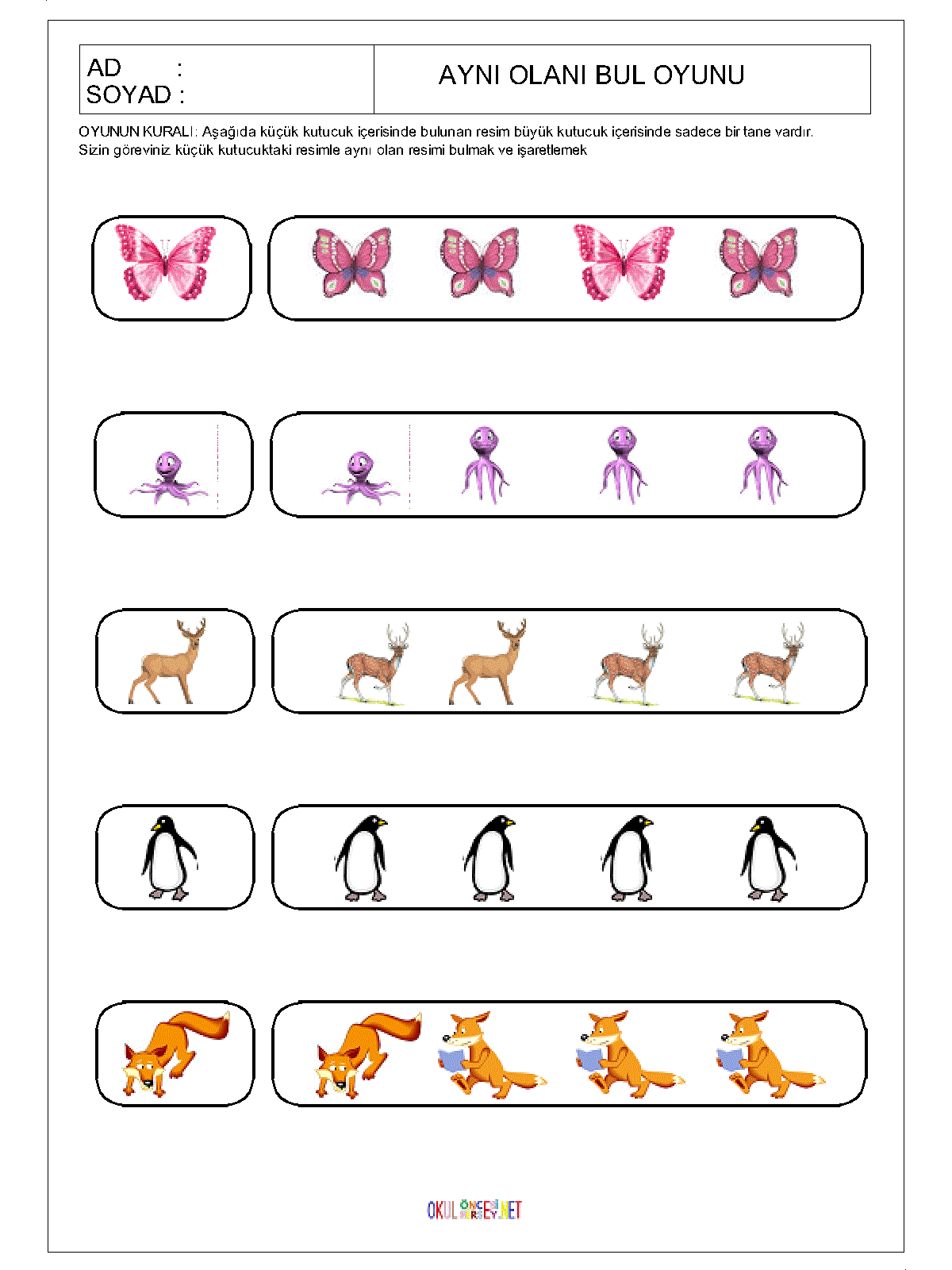 okul öncesi Aynı Olanı Bul,