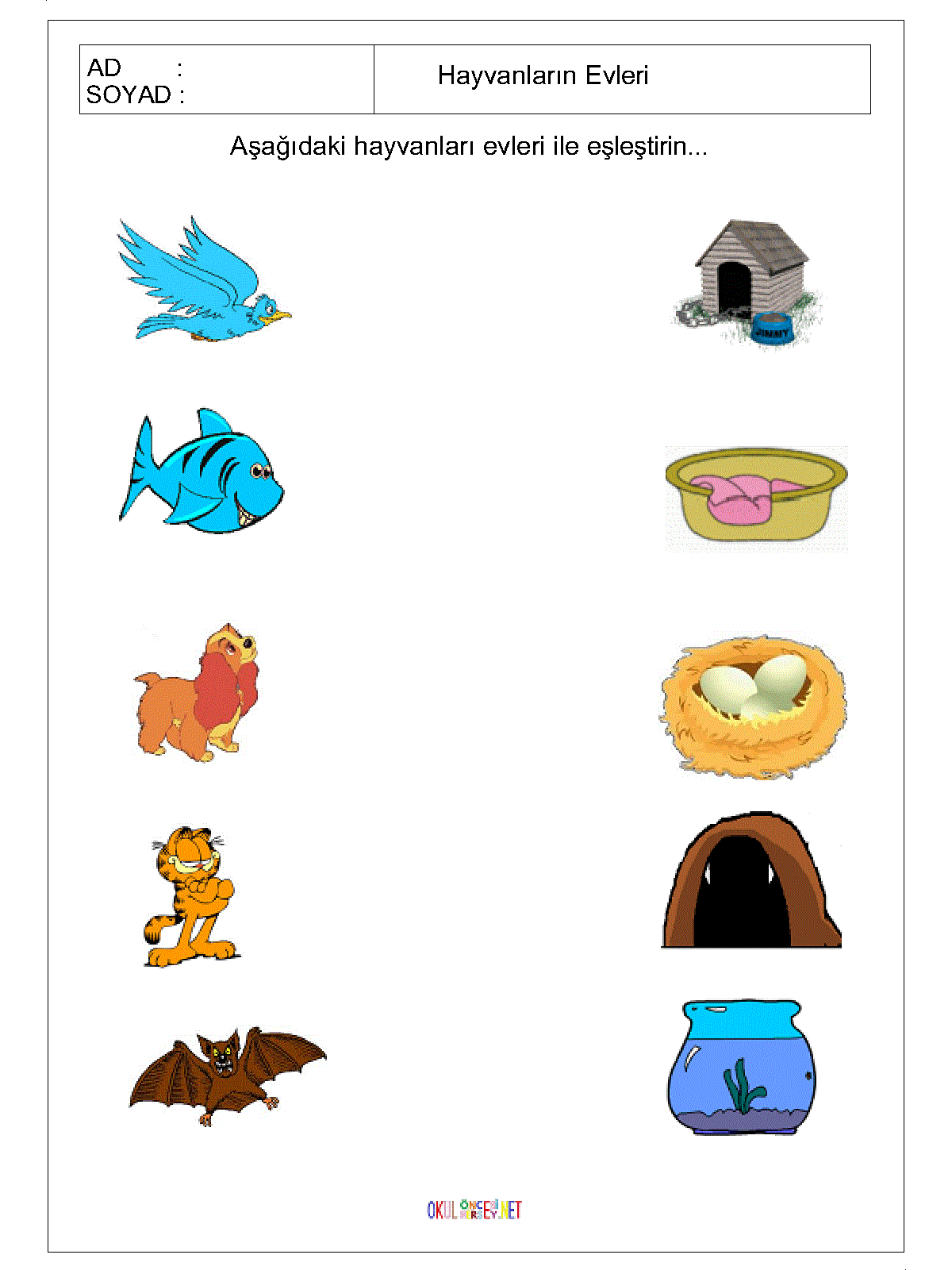 Bu kısımda okul öncesi dönem çocukları için hayvanları tanıma ve isimlerini öğrenmelerine yönelik çalışma sayfaları mevcuttur.
