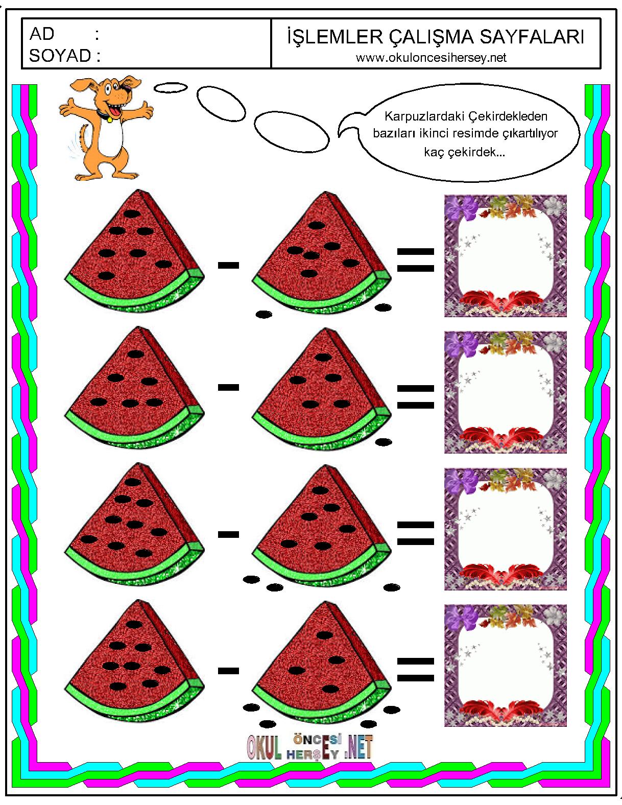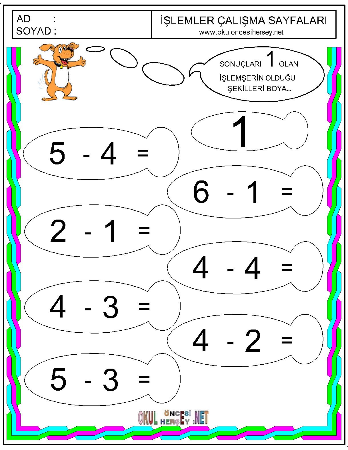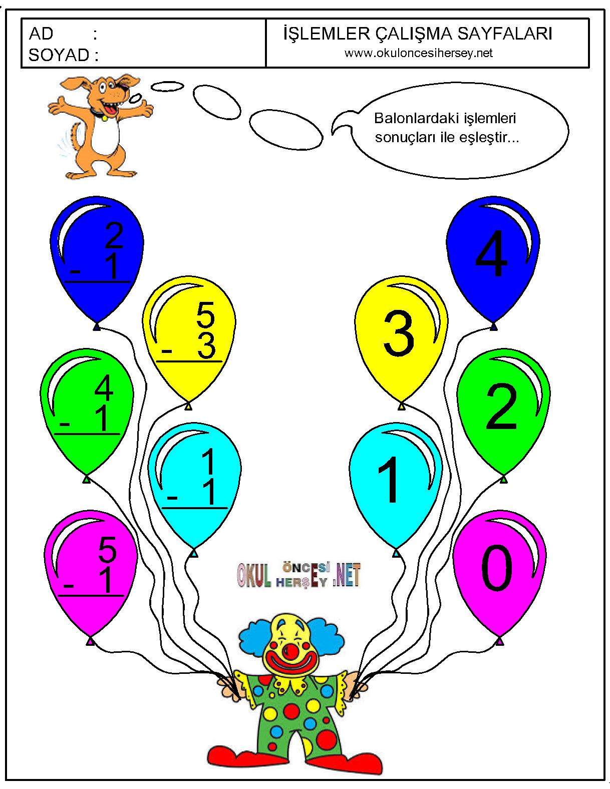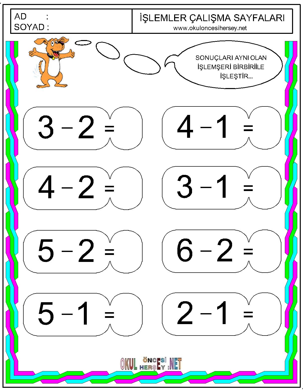 Okuloncesihersey.net ekibi çocukarınızın matematiksel işlemleri öğrenmeleri için bir çok çalışma sayfası hazırlamış ve sizlerin huzuruna sunmuştur.